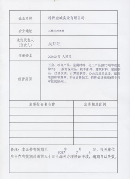 进出口货物收发货人报关注册登记证书1